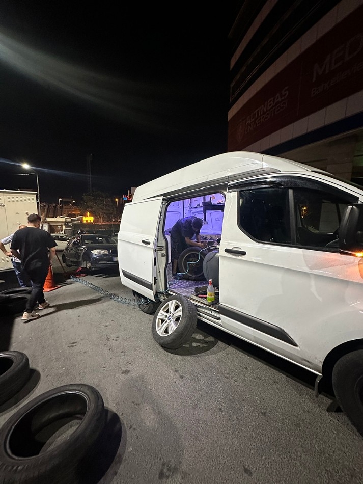 Mobil Lastik Aracımızla lastikçi dükkanını bulunduğunuz konumuna taşıyoruz. Lastik tamiri, lastik değişimi ve akü takviyesi gibi işlemleri bulunduğunuz yerde gerçekleştiriyoruz.